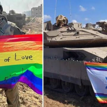 Il soldato israeliano ha aggiunto: “La bandiera rappresenta il sostegno che Israele mostra alla comunità LGBT“. In un’altra foto fornita dal sito Insider, il soldato appare in piedi davanti ad un carro armato con la bandiera israeliana, i cui colori si mischiano con quelli dell’arcobaleno in alto e in basso.
